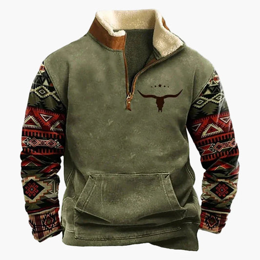 Herren Pullover im Western-Stil mit halbem Reißverschluss und Aztekenmuster – Perfekt für Outdoor und Freizeit