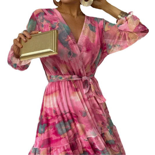 Tanya – Langes bedrucktes Kleid mit losem Schnitt und Taschen