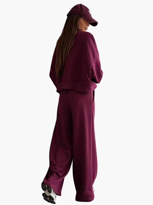Damen Lounge- und Sportanzug Zweiteiler – Modischer Freizeitlook mit weitem Bein und V-Ausschnitt