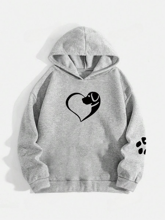 Damen Hoodie mit Hundeherz- und Pfotenmotiv – Perfekt für Hundefreunde, Casual & Alltag