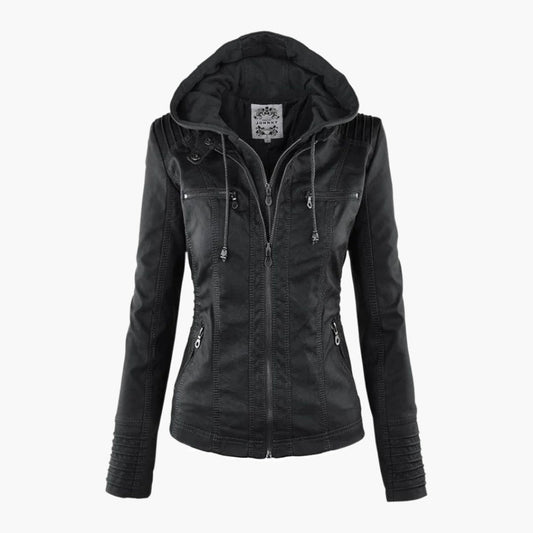 Damen Herbstjacke Elegant Veganleder mit Kapuze und Reißverschluss – Modische Freizeitjacke für Alltag und Outdoor