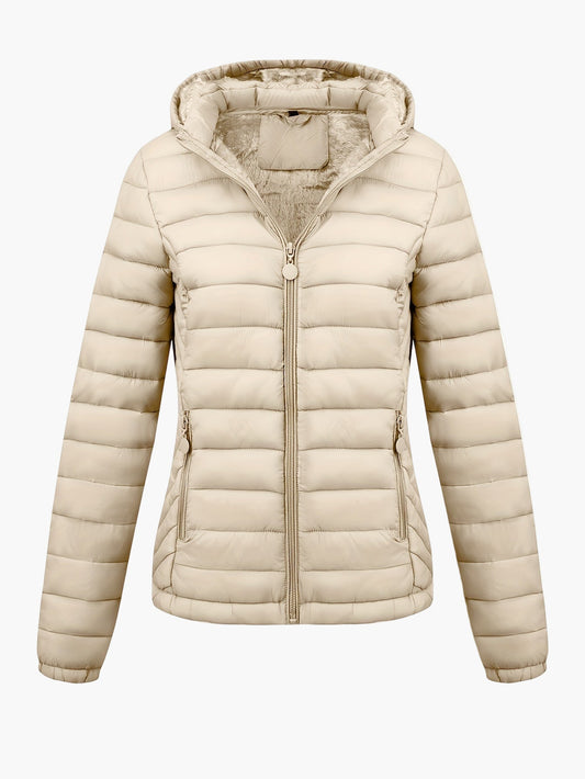 Damen Lange Steppjacke mit Kapuze und Teddyfutter – Modischer Wintermantel für Freizeit und Reisen