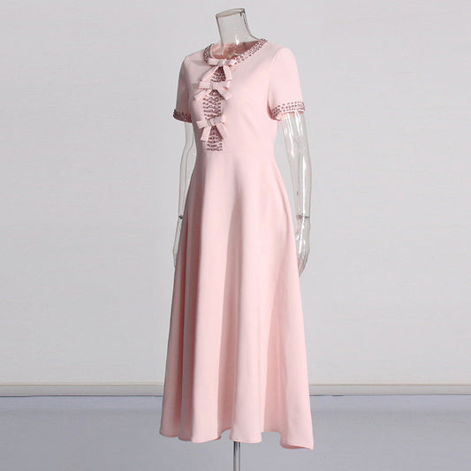 Helen – Hoch tailliertes Kleid mit Rundhalsausschnitt und Strass Schleife