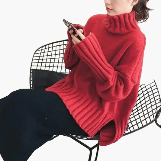 Women's Sweater in Korean Style with Stand-up Collar for Autumn and Winter – Casual Oversize Look
