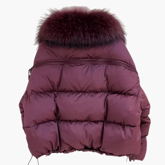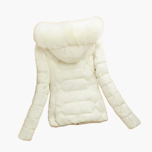 Women's winter quilted jacket with hood and fur collar – elegant outdoor coat