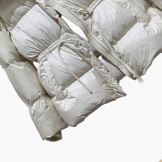 Women's winter quilted jacket with hood and waist drawstring – fashionable, warm outdoor coat for everyday and leisure use
