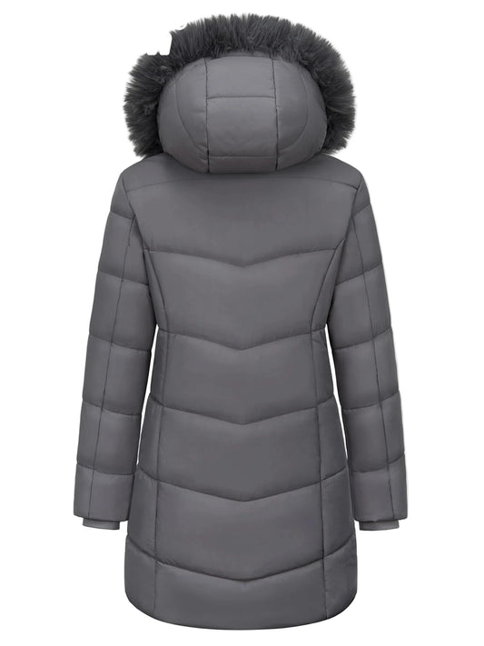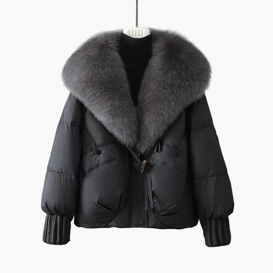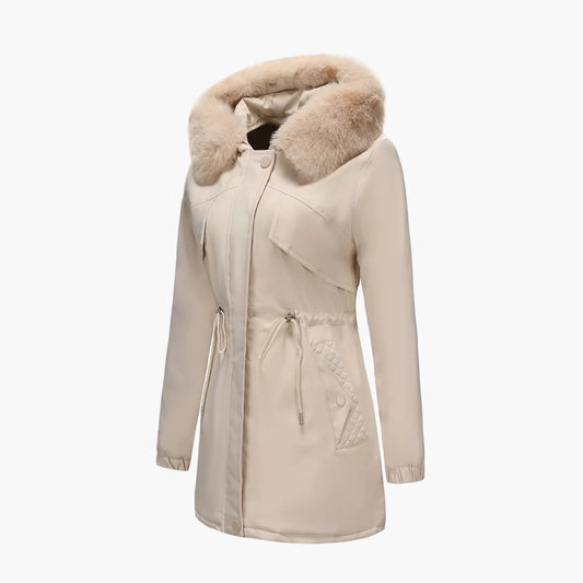Women's winter jacket with hood and faux fur collar – Elegant parka for cold days