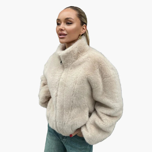 Women's Teddy Fur Short Jacket Vintage Look – Fashionable Transitional Jacket for Everyday & Leisure