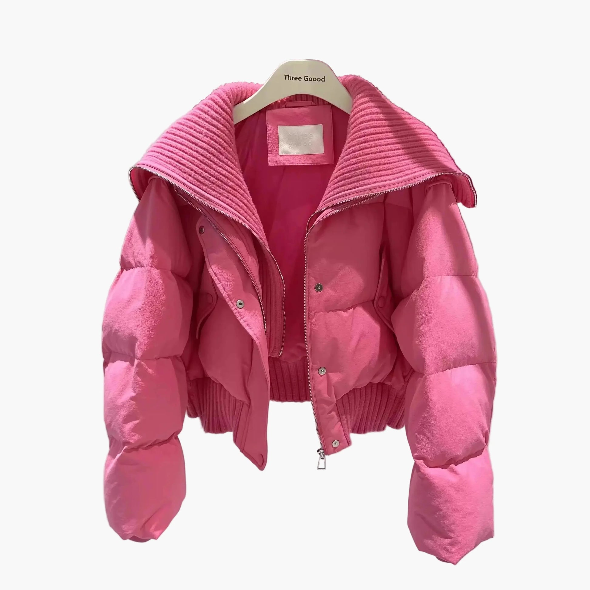 Women's Short Quilted Jacket with Large Collar – Fashionable Winter Jacket for Everyday and Leisure Use