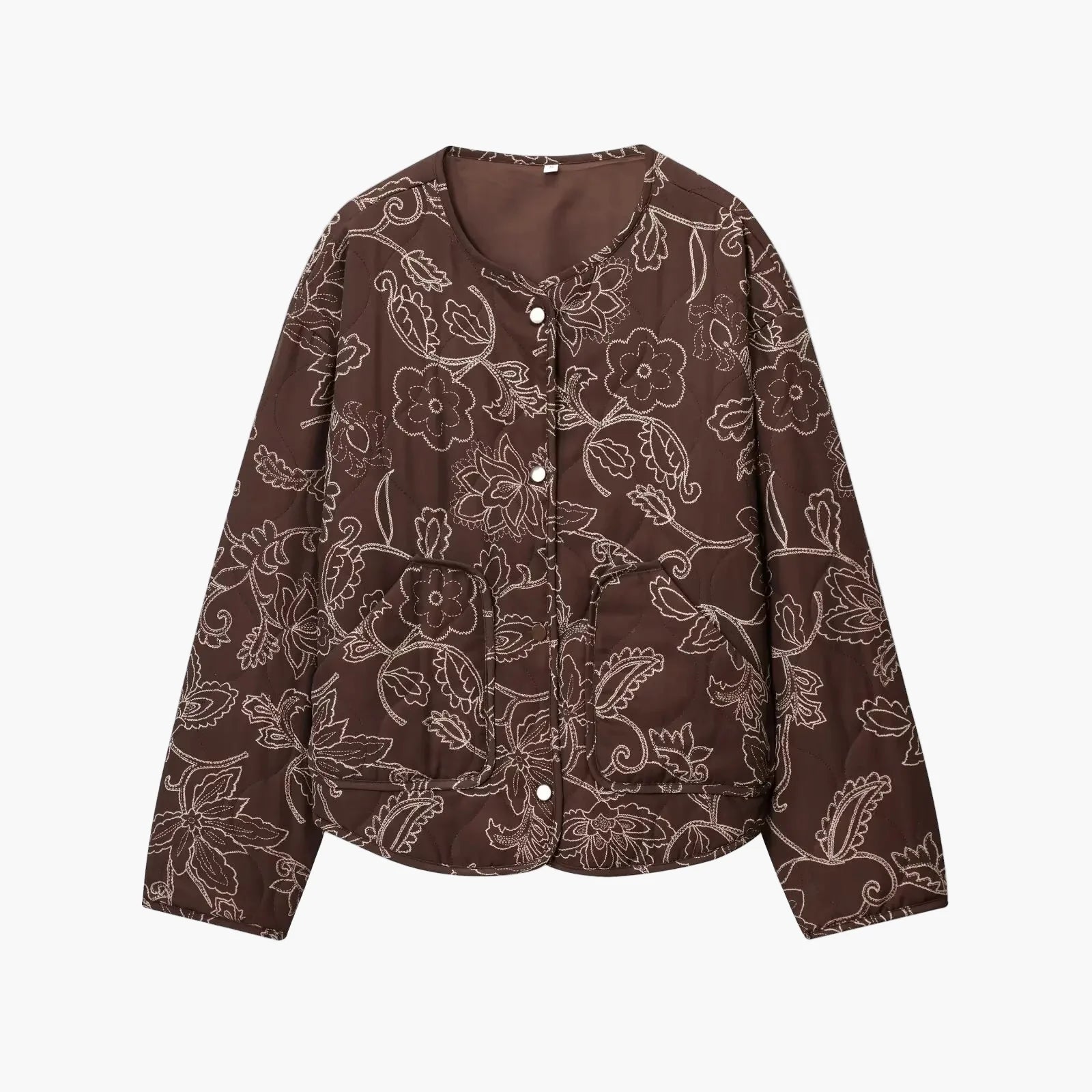 Women's transitional jacket with embroidered floral pattern – Casual city look, ideal for spring and autumn
