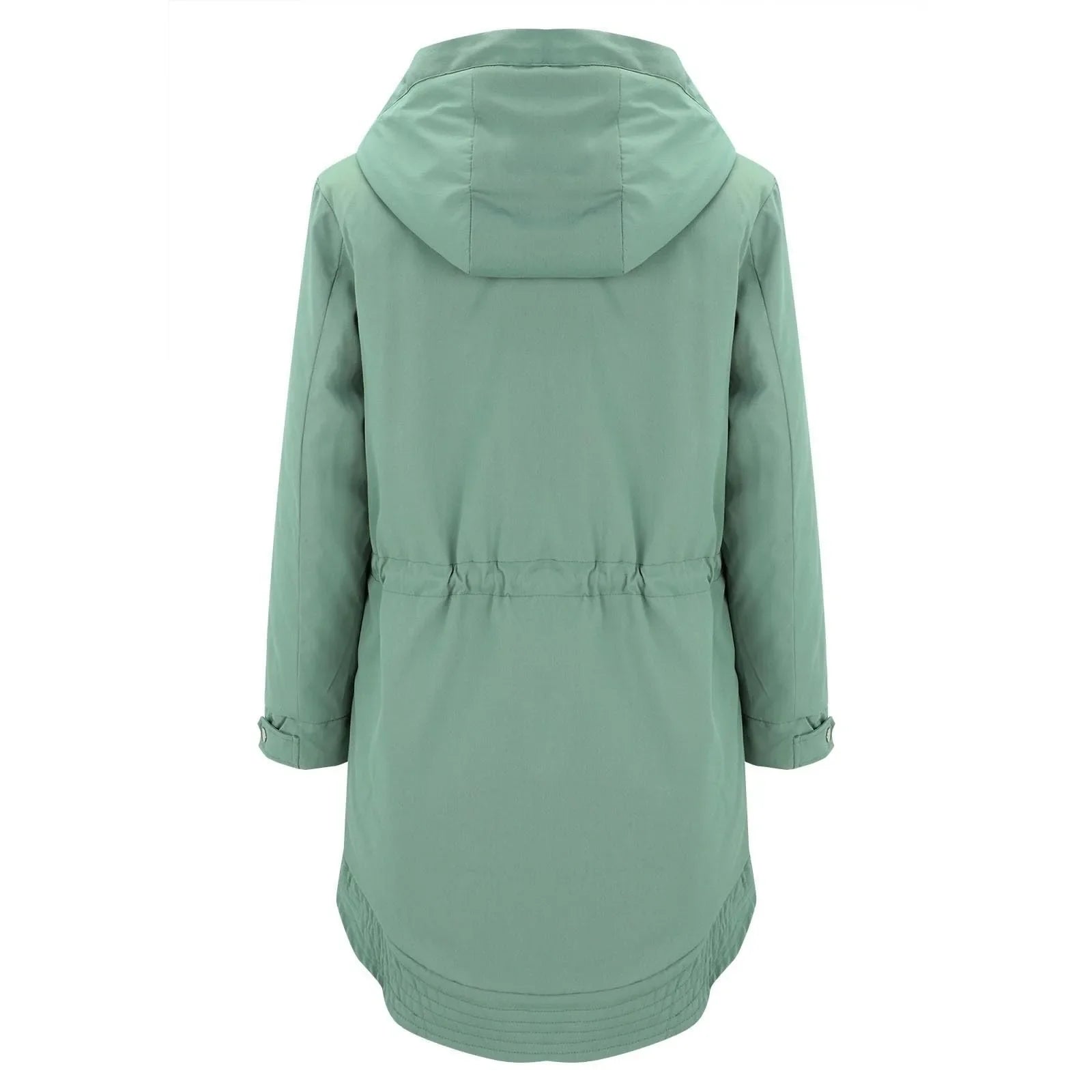 Experience stylish comfort with this women's winter parka with hood! The trendy, long design with a modern silhouette creates a feminine figure and offers cozy warmth on cold days thanks to the soft fleece lining. The thoughtful fit with waist drawstring and practical pockets makes this coat the ideal companion for everyday life, walks, or outdoor adventures.
