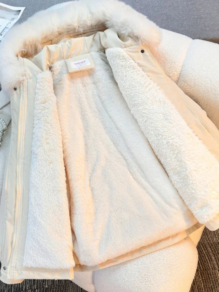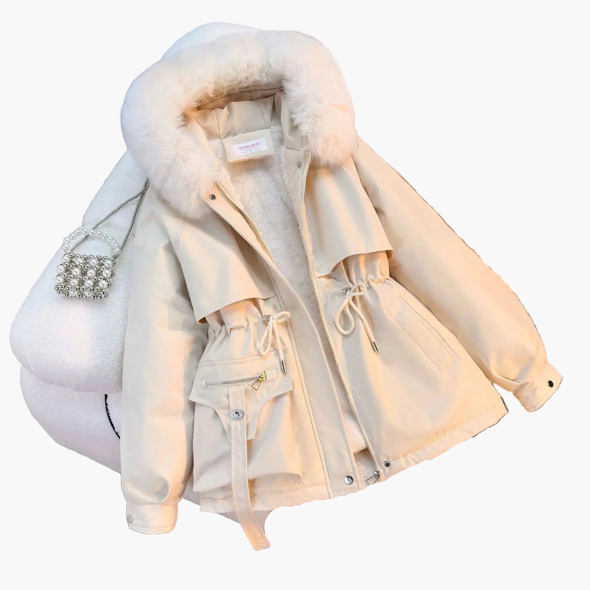 Women's winter jacket with hood and detachable faux fur collar – fashionable outdoor parka for cold days