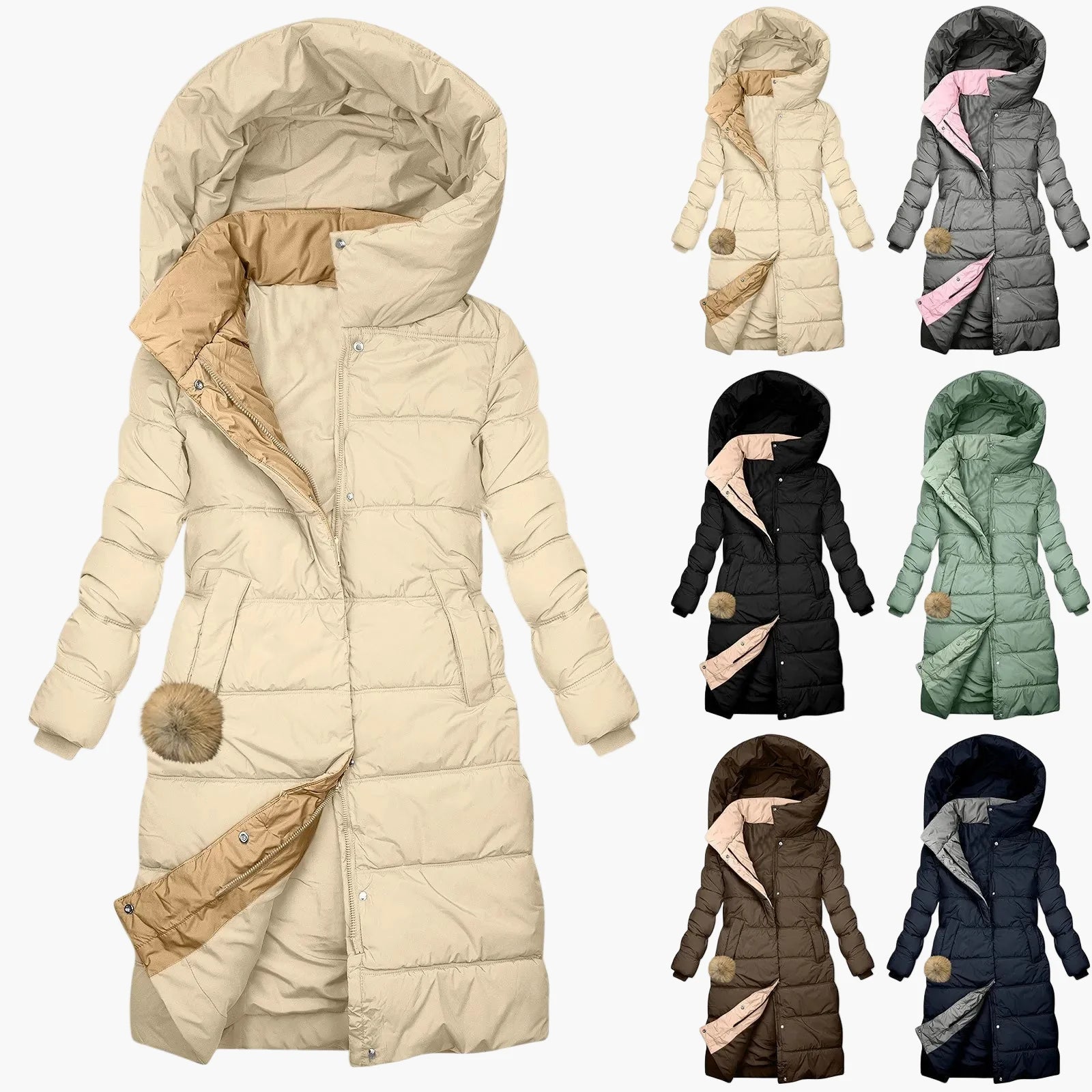 Women's Long Winter Coat Quilted Jacket with Hood – Fashionable Windproof Puffer for Cold Days