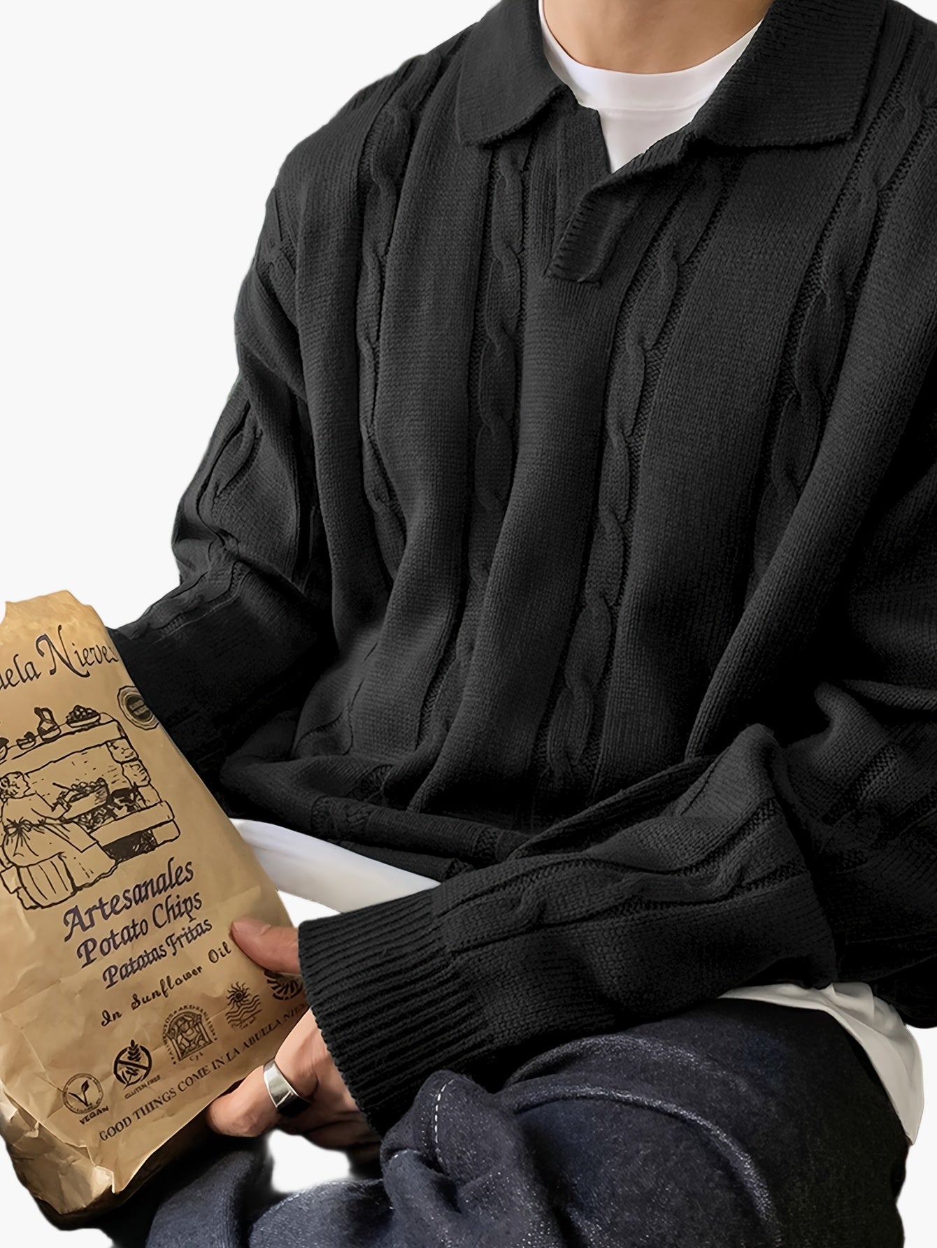 Men's Polo Knit Sweater in Casual Style – Fashionable Leisure Look for Everyday and Going Out