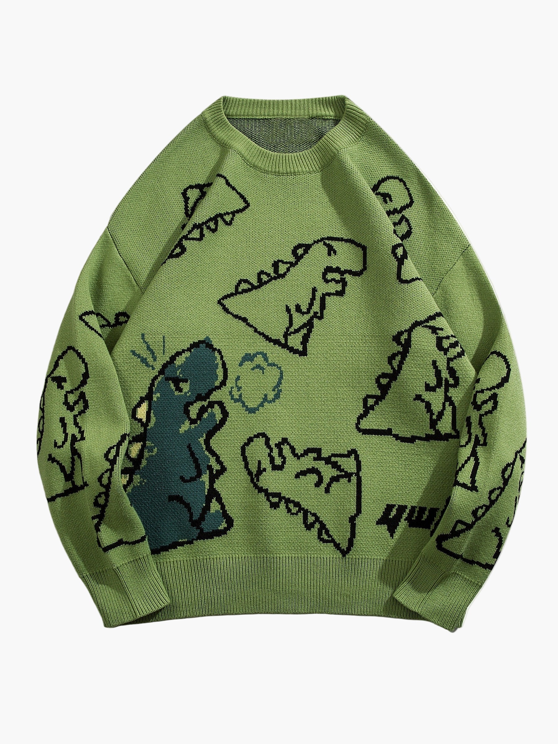 Men's sweater with cartoon dinosaur pattern, casual, oversized, ideal for autumn/winter
