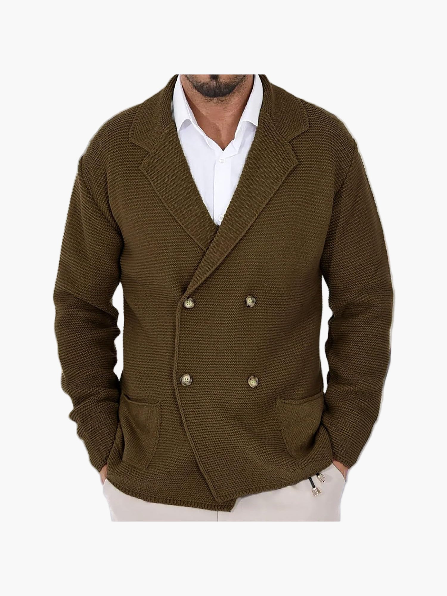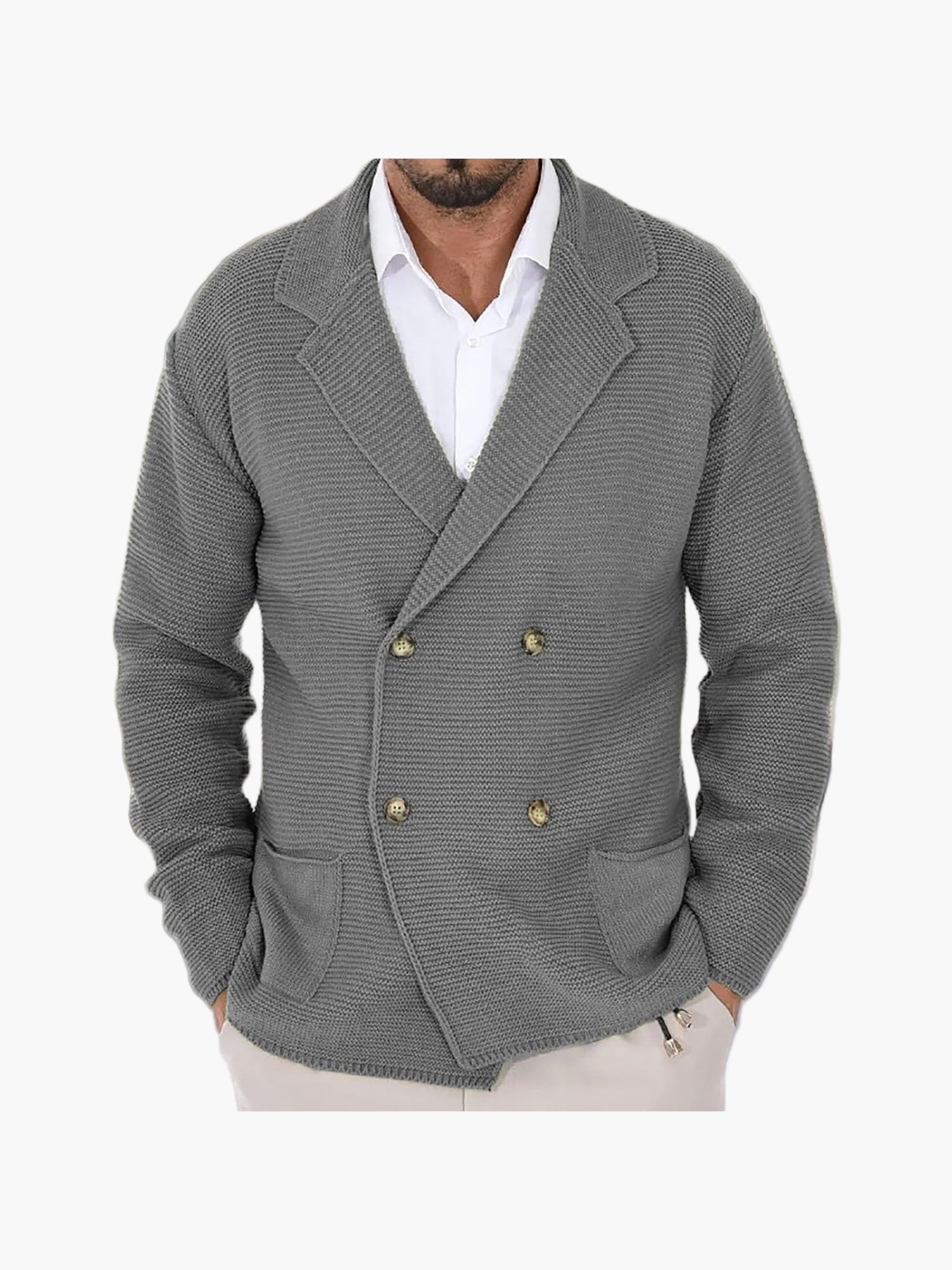 Men's knitted cardigan with lapel collar, double-breasted – Elegant casual blazer for everyday and office use