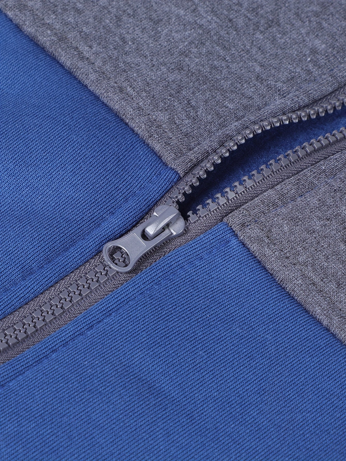 This stylish men's tracksuit combines sporty comfort with modern design and is perfect for everyday wear, training, or relaxed hours at home. The set consists of a casual hooded sweatshirt with a zipper and matching jogging pants. The color combination and simple patchwork design give the outfit a modern, urban touch.