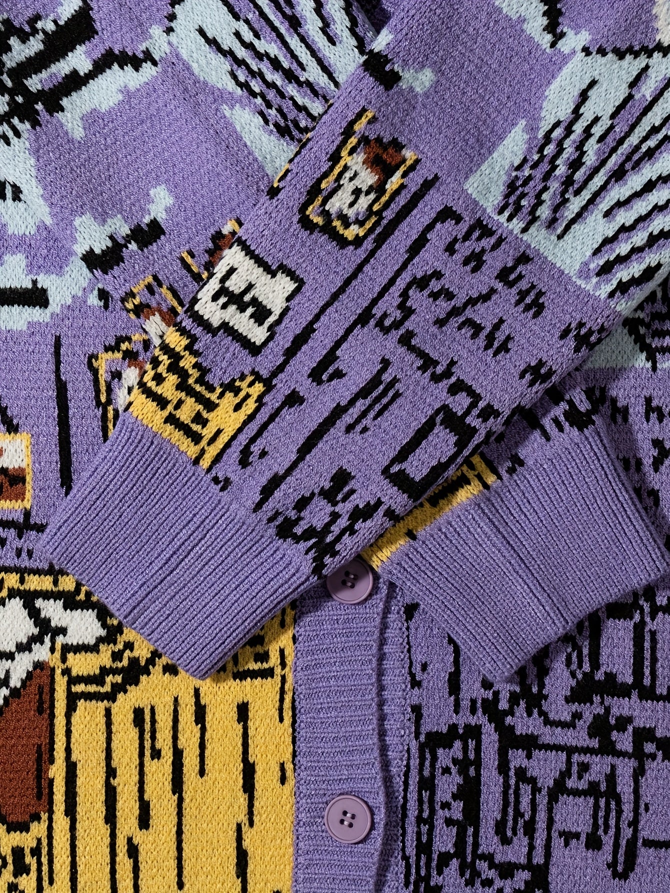 With its loose cut and comfortable knit, the cardigan is perfect for the cooler days in autumn and winter. The V-neck and button placket provide a classic look, while the colorful motif adds character to any outfit. Perfect for leisure, art lovers, or as a statement piece in everyday life.