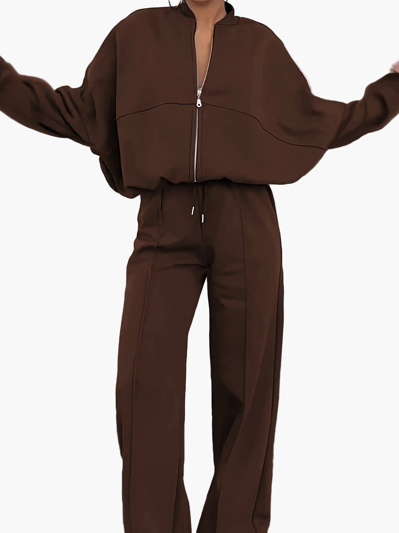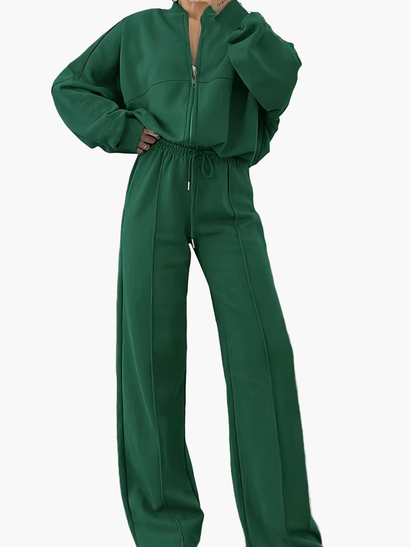 Damen Freizeit-Zweiteiler mit Reißverschluss und weitem Bein – Lässig & Bequem für Alltag oder Reise