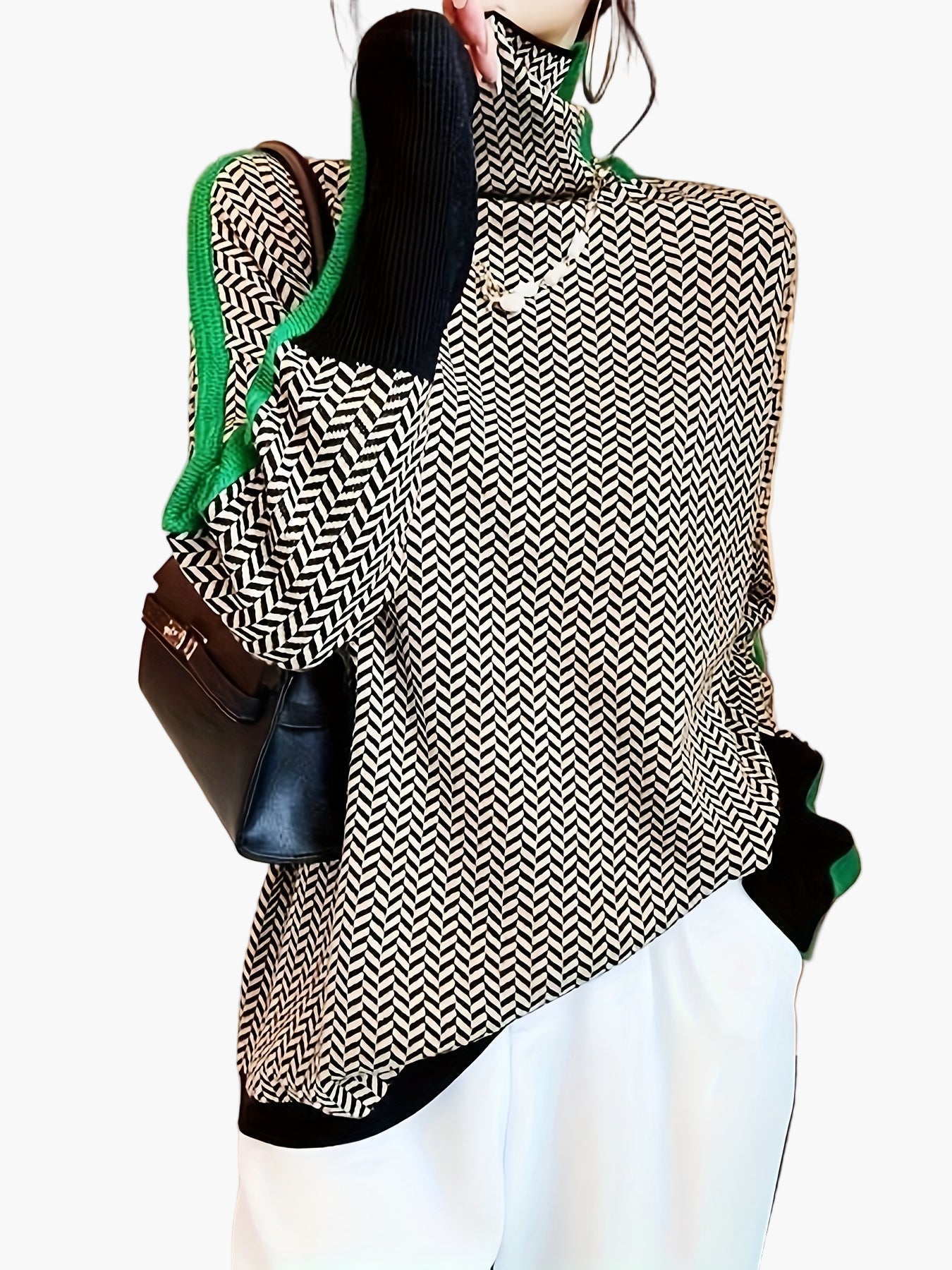 Damen Pullover mit Stehkragen und modernem Zickzackmuster – Eleganter Strickpulli für Herbst & Winter