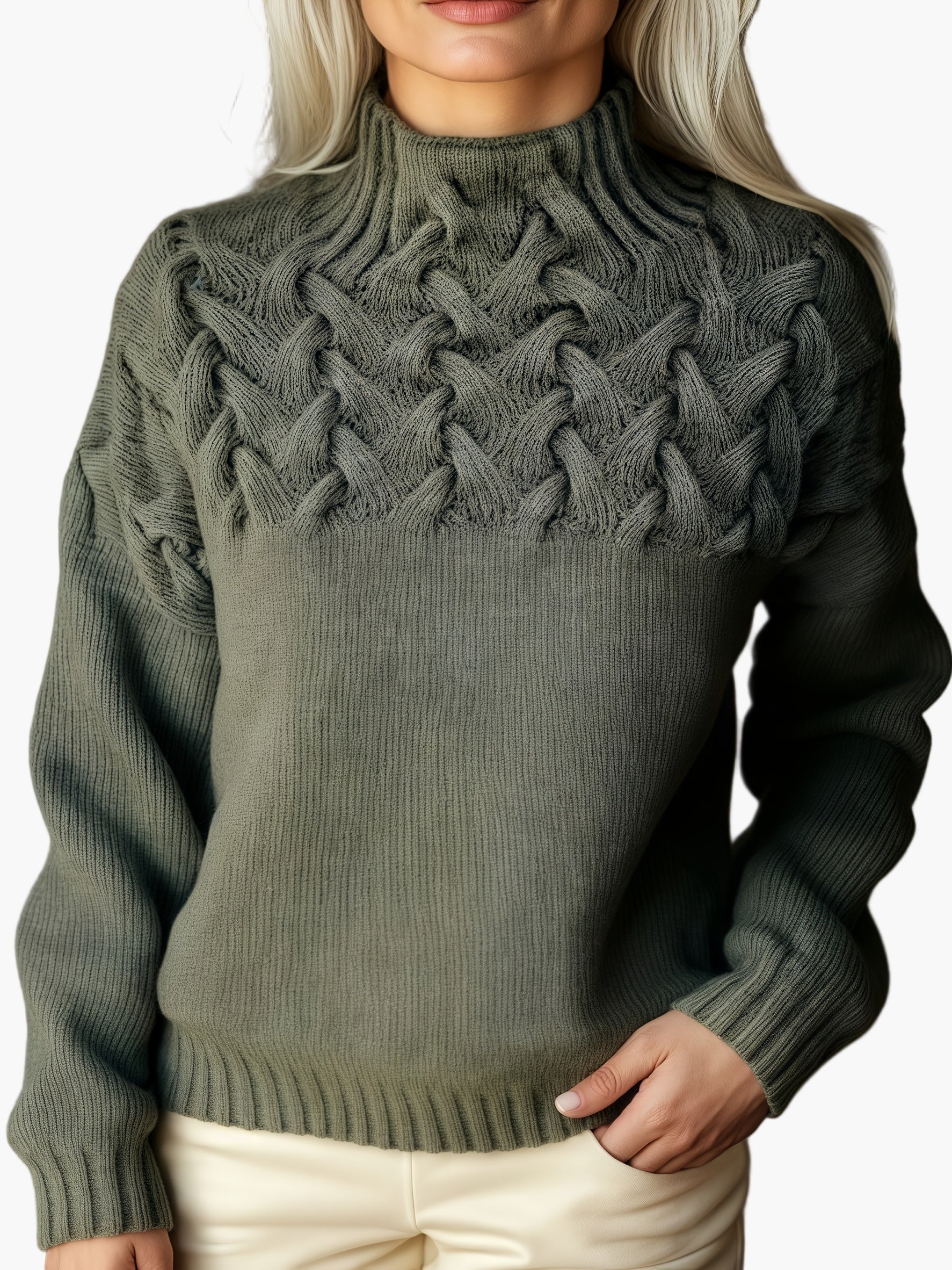 Damen Strickpullover mit Zopfmuster und Stehkragen – Modischer Winterpullover für Freizeit und Alltag